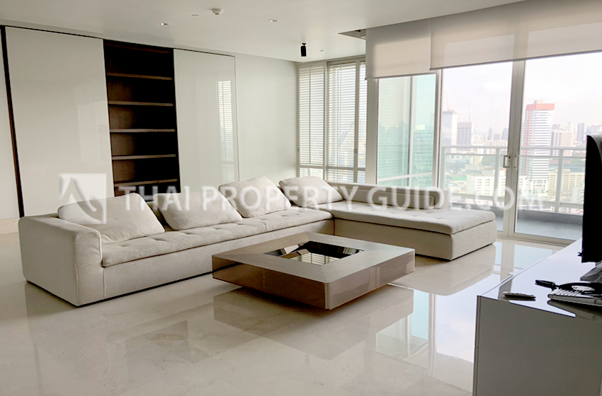High rise condominium in a prestigious area near BTS Chong Nonsee sky train station. This unit offers panoramic city views, solid wooden floor, 3 meter high ceiling and unique bathtub.