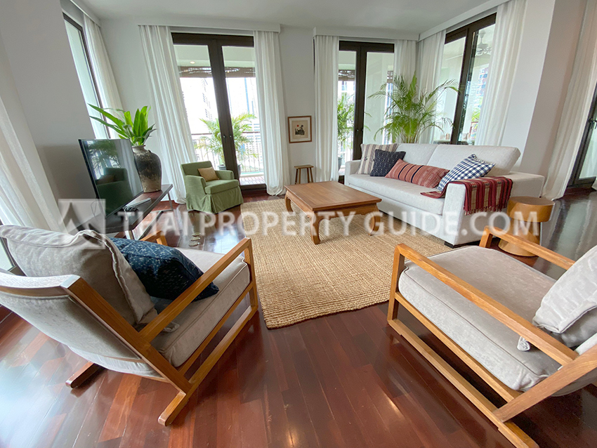 Apartment for rent in Sathorn, Bangkok Spectacular High End Apartment, just 1 Unit per Floor. Boasting Large Terraces, with Free Flowing Living & Dining Areas. Contemporary American Kitchen. Ceilings of almost 3 meters with wrap around floor to ceiling glass windows. This sought after apartment provides Skyline Views of the Chaopraya & Ploenchit & Sathorn.