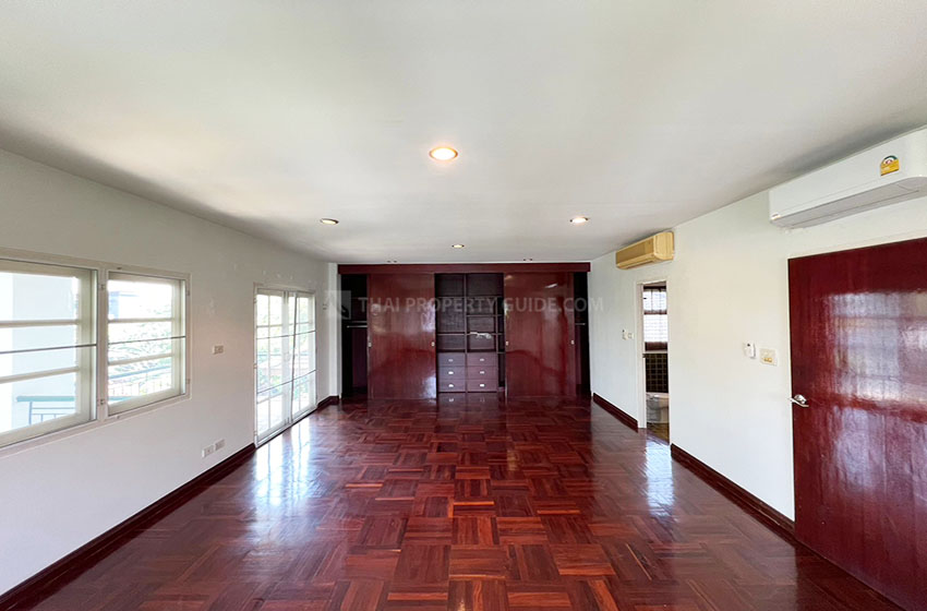 house in a secluded, high-end residential area just 5 minutes away from soi Thonglor. Modern design with large living-dining areas. Fully Equipped Western Kitchen. 4 Large bedrooms with built-in and walk closet.