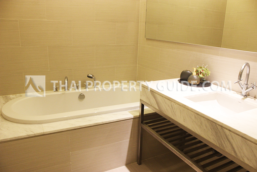 Modern 3 bedroom condominium in Sathorn. Open living-dining-kitchen area.